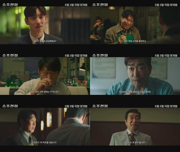 ‘소주전쟁’이 국민 소주를 놓고 벌이는 흥미진진한 사투를 담은 1차 예고편을 전격 공개해 예비 관객의 기대감을 높이고 있다.