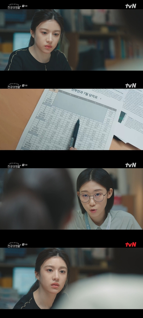 27일 방송된 tvN 토일드라마 '언젠가는 슬기로울 전공의생활'(크리에이터 신원호, 이우정/ 연출 이민수/ 극본 김송희 / 기획 CJ ENM 스튜디오스/제작 에그이즈커밍)에서는 오이영(고윤정 분)이 김사비(한예지 분)에게 당직 변경에 대해 부탁하는 모습이 나왔다.