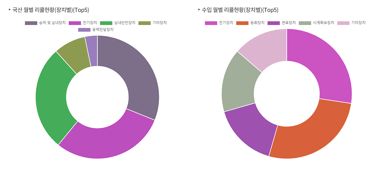 국산차는 현대차가 61만1,297대, 기아가 44만5,539대, 한국지엠이 2만6,562대를 기록했으며 KGM(구 쌍용차)는 단 한 대의 리콜도 발생하지 않았다.