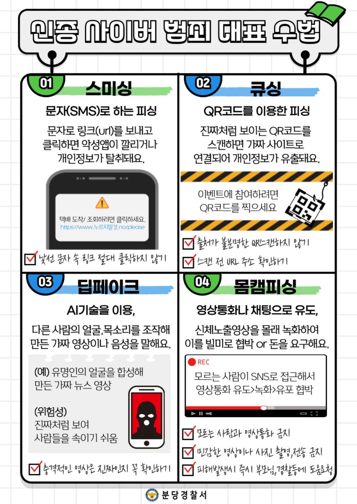 분당경찰서는 최근 지능화된 사이버 범죄가 증가함에 따라, 국민들이 피해를 입지 않도록 경각심을 가져야 한다고 강조했다.
