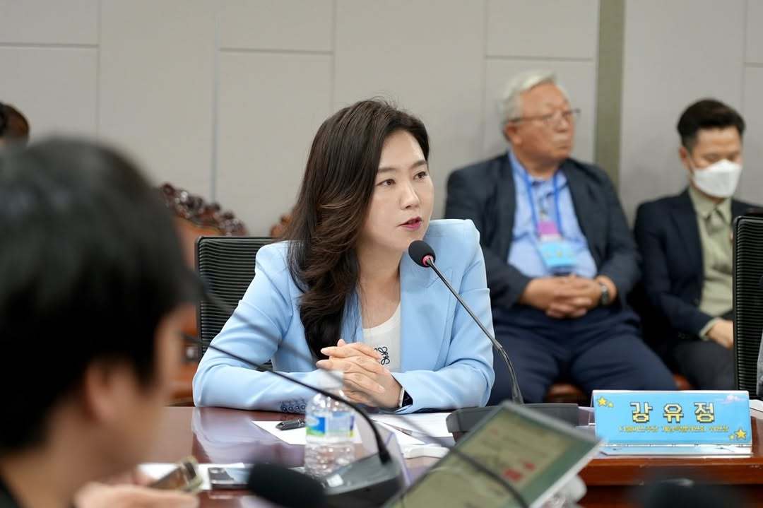 강 대변인은 지난해 9월 24일 대한축구협회 등에 대한 현안질의에서 주목받았다. 홍명보 축구 국가대표팀 감독 선임 과정에서의 결정들이 대한축구협회 정관에 부합하지 않는다는 점에 초점을 맞춰 깊이 있는 질문을 이어갔고, 증인으로 출석한 정몽규 대한축구협회 회장을 궁지로 몰아 축구팬들로부터 호평을 받았다.
