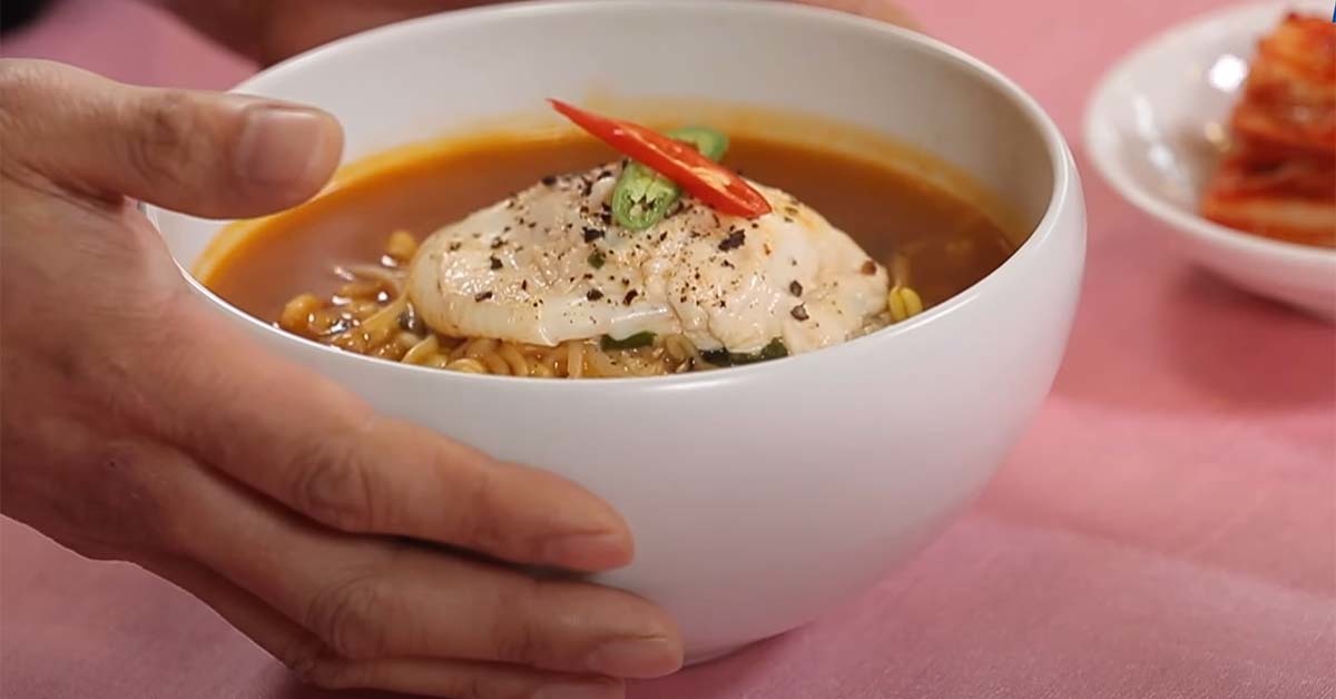 완성된 라면은 노른자를 터뜨려 한입 먹으면 촉촉한 노른자와 시원한 콩나물 육수 맛이 라면과 각별하게 어울린다. 계란은 고명으로 올라갈 수 있게끔 형태를 유지해 노른자가 다 안 익을 정도의 반숙으로 조리하는 것이 핵심이다.