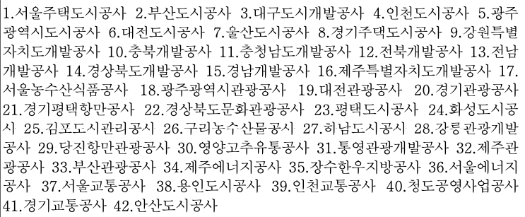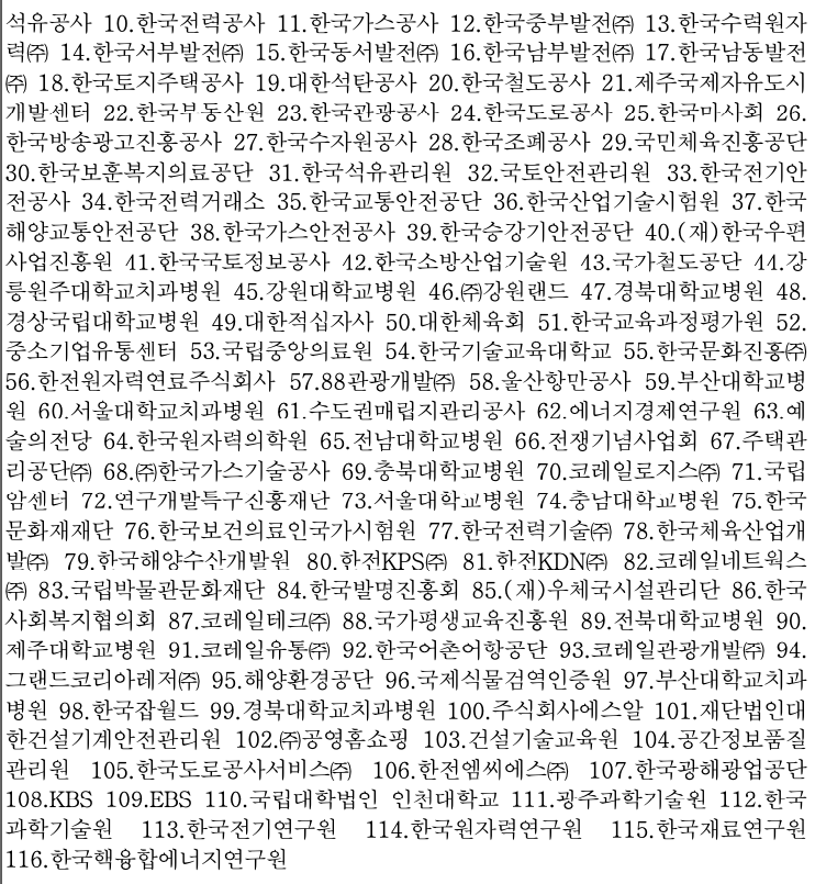 다시 돌아오면, 비금융공기업에는 무엇이 있냐: