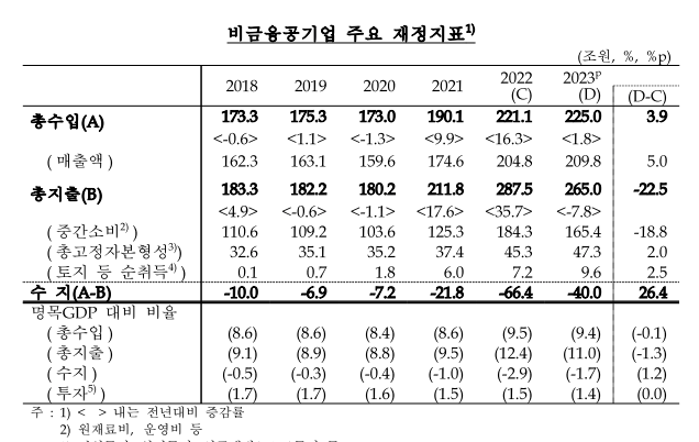 - 비금융공기업: 40조원 적자
