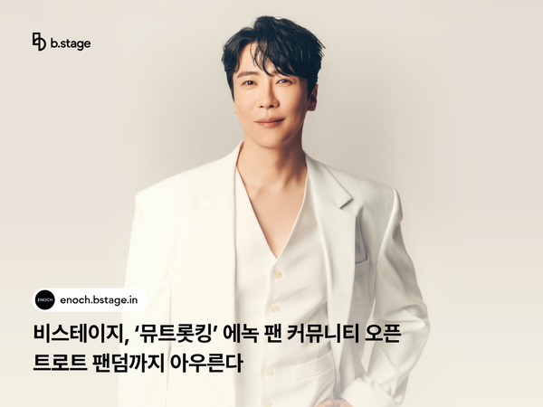 글로벌 팬덤 플랫폼 비스테이지가 뮤지컬 배우이자 트로트 가수로 활약 중인 에녹의 공식 팬 커뮤니티를 오늘(13일) 오후 12시 오픈한다고 밝혔다. 이번 커뮤니티는 비스테이지 최초의 트로트 아티스트 기반 팬 플랫폼 사례로, 장르와 세대를 확장하는 팬덤 비즈니스의 새로운 가능성을 보여주는 시도로 주목받는다.