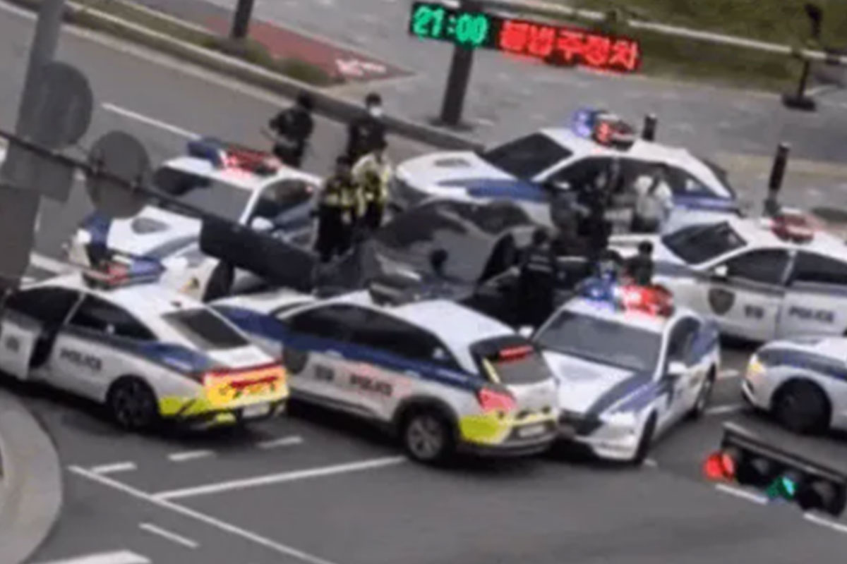 1시간 40분에 걸쳐 경찰과 실랑이를 벌이던 운전자는 돌연 차를 타고 도주를 시도했다.