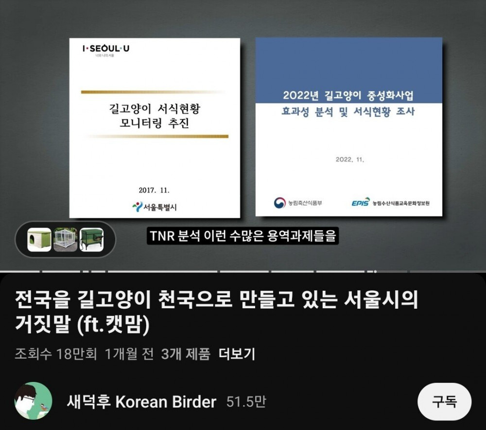 영상 요약 : 길고양이 개체수 관리한다는 명목으로 서울을 비롯한 전국에서 세금 펑펑 쓰는중