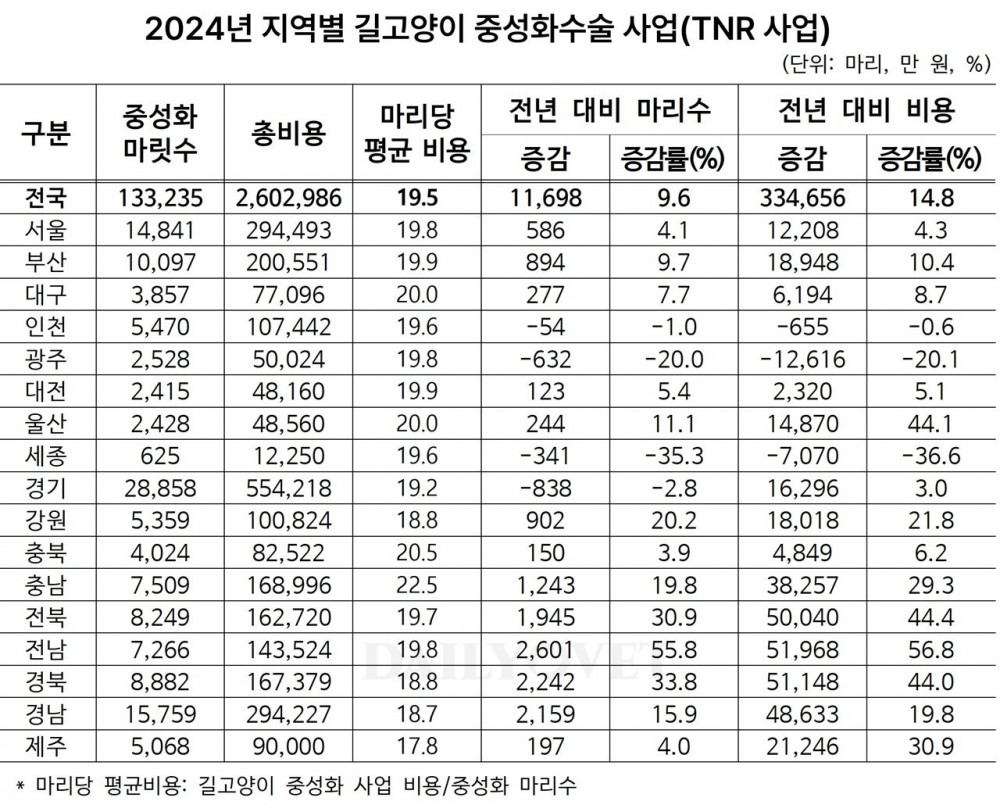 2024년 길고양이 한마리당 20만원 가까이 쓰고