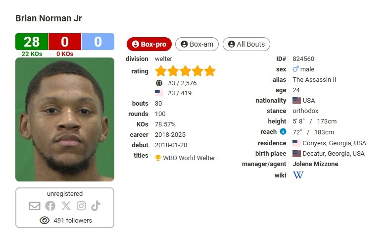현 WBO 웰터급 세계 챔피언이자웰터급 미국랭킹 3위, 세계랭킹 3위로현 웰터급에서 굉장히 강하다고 평가 받는 선수임