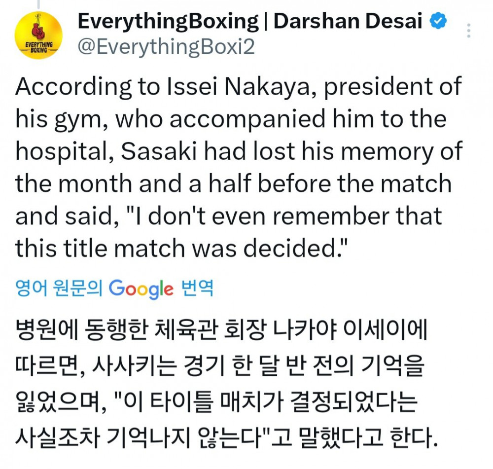 사사키 진은 기절한 후 한동안 일어나지 못하여 들것에 실려나감 ㄷㄷ