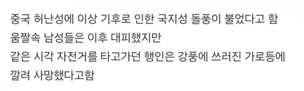 시속 133km 강풍에 노상 까다가 날아간 중국 남자들