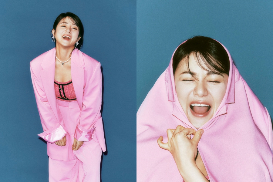 또한 트위드 텍스처의 니트탑에 오버사이즈 수트를 절묘하게 매치한 핑크 스타일링을 통해서는 강렬하면서도 러블리한 모멘트를 뽐냈다. 특히 장난기가 스며든 익살스러운 표정 연기로 자유분방한 매력을 한껏 자아냈다.