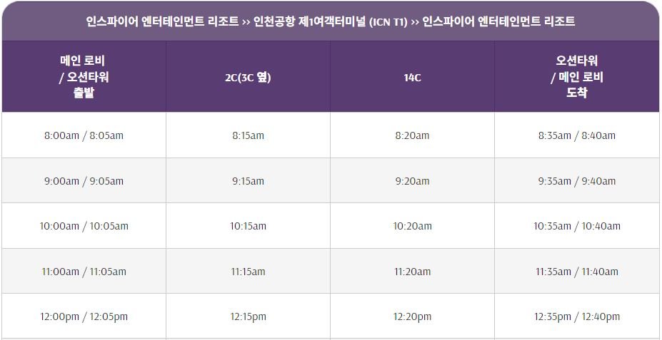 본인들도 이 막장스러운 접근성에 대해서 잘 알고 있기 때문에 인천공항 1터미널과 2터미널에서 각각 셔틀버스를 굴리고 있음. 1터미널과 2터미널에서 각각 1시간 간격으로 운행중.