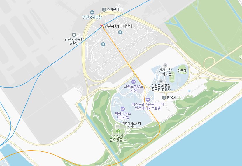 일단, 이 리조트는 걸어서 가는것이 불가능함. 인도가 리조트 입구에서 끊겨있기 때문. 카카오맵이나 네이버 지도에 쳐봐도 인천공항에서 인스파이어 리조트까지 도보로 가는 방법은 '정보 없음'이라는 결과가 뜸.
