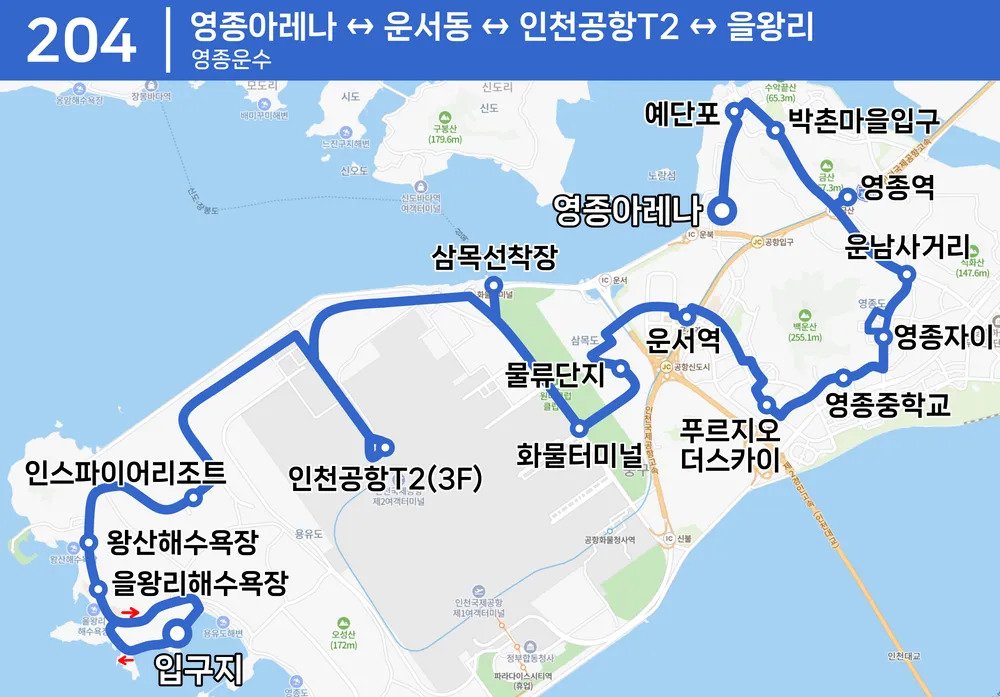 인스파이어 리조트 앞에 내려주는 버스는 인천 시내버스 204번과