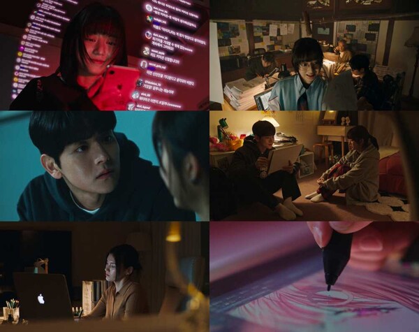 이어, 이번 작품을 통해 스크린 첫 주연에 도전하는 아이돌 그룹 위너의 김진우는 다크웹에서 활동하는 정체불명의 인물 ‘한냐 군’ 역을 맡아 연쇄 살인범이라는 파격적인 이미지 변신에 나선다. 기존의 순한 이미지를 벗고 미스터리하고 잔혹한 분위기의 캐릭터로 분한 그는, 김현수와 함께 강렬한 연기 시너지를 예고하며 예비 관객들의 기대를 높이고 있다.