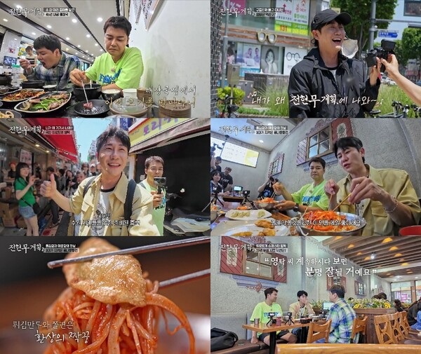 18일(금) 방송된 본격 리얼 길바닥 먹큐멘터리 ‘전현무계획2’ 38회에서는 전현무-곽튜브(곽준빈)가 ‘먹친구’ 영탁과 함께 ‘54번째 길바닥’인 수원의 ‘보물 맛집’을 탈탈 터는 먹트립이 펼쳐졌다. 이들은 ‘소 해장국’을 시작으로, 시장 쫄면-만두 맛집, ‘대한민국 가리구이(갈비) 명인 1호’가 하는 소갈비 맛집까지 모두 섭렵해 안방극장에 알찬 정보와 힐링을 안겼다.
