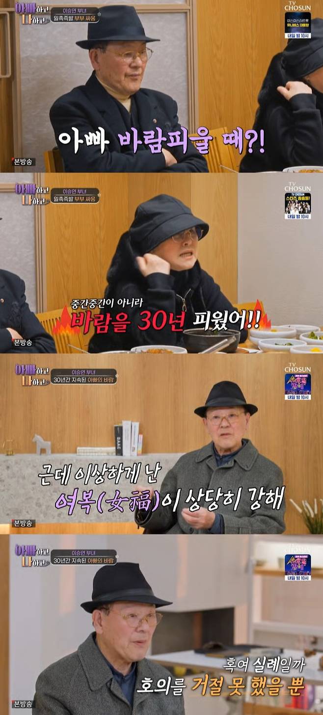 이승연의 아버지는 “전부 여자들이 먼저 그런 거다. 이상하게 난 여복이 상당히 강했다”고 대답해 스튜디오를 술렁이게 했는데요.