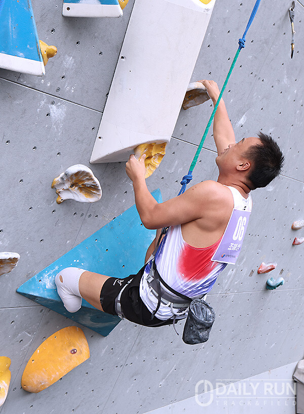 장애인 선수 조해성이 암벽을 오르고 있다.