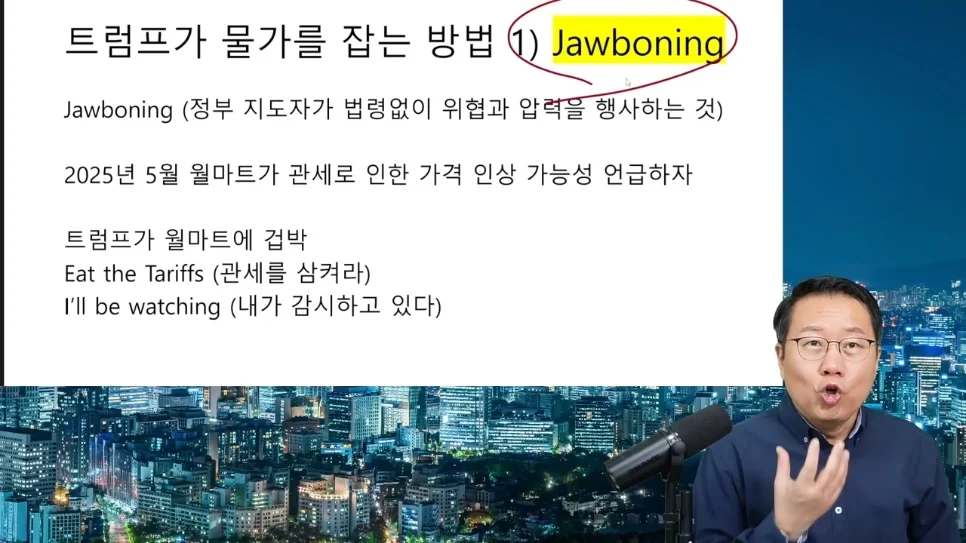 첫번째는 윽박지르기Jawboning이다. 트럼프는 월마트에게 관세로 인한 물가상승을 흡수하라고 압박한 적이 있다