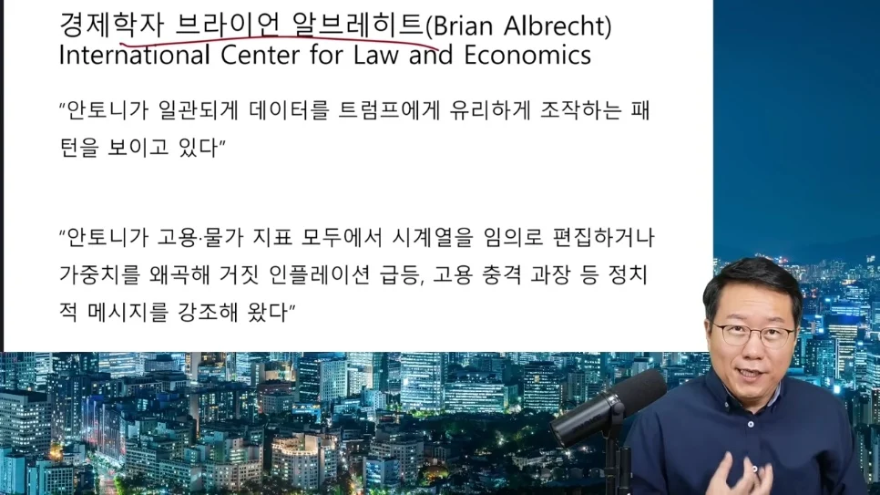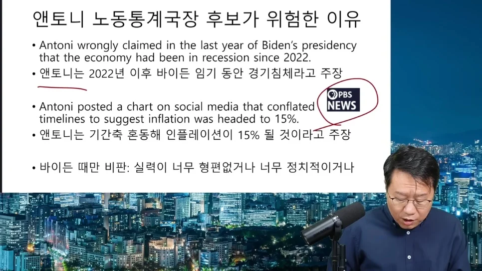 안토니는 바이든 때만 경제가 침체되었다고 주장하고, 트럼프를 위해서는 데이터를 조작한 인물이다.