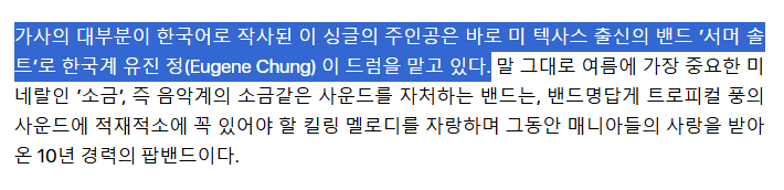이 밴드는 데뷔 10년이 넘었는데 (내가 들은 summer salt의 노래 중엔) 최초의 한국어 곡을 발표해서