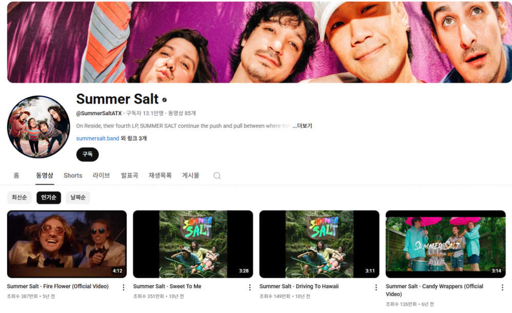 오피셜 유튜브 구독자 수도 13만명 밖에 안 되고, 최고 조회수 영상의 조회수도 400만이 안 되는 크게 유명한 밴드는 아님