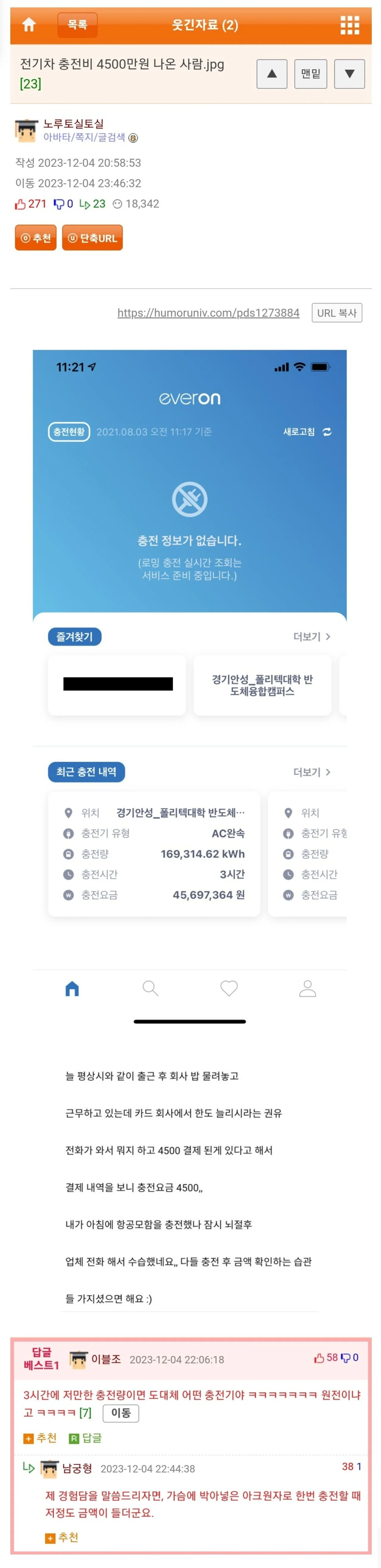 전기차 충전비 4500만원 나온 사람