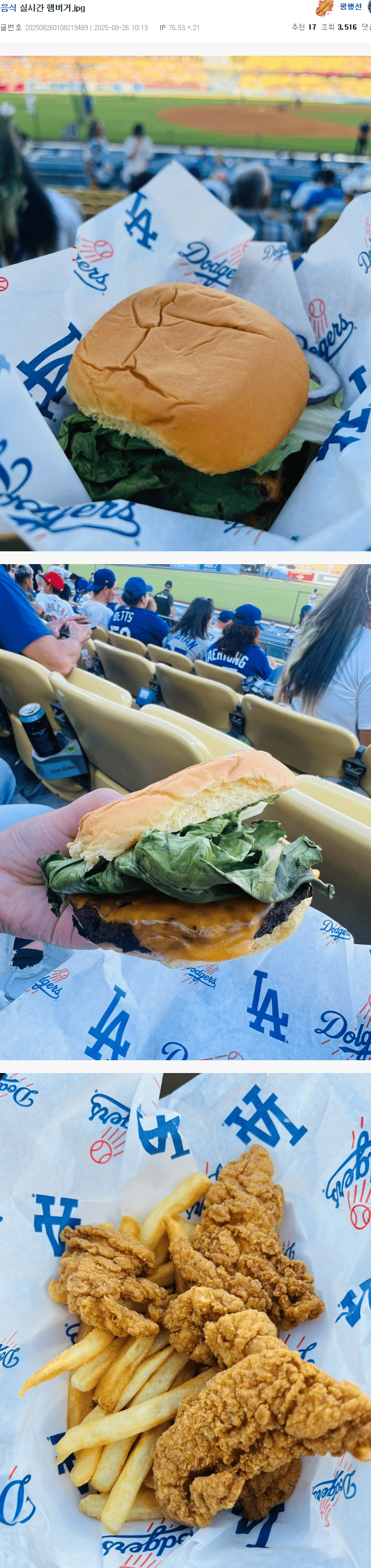 다저스파크 햄버거 치킨 수준