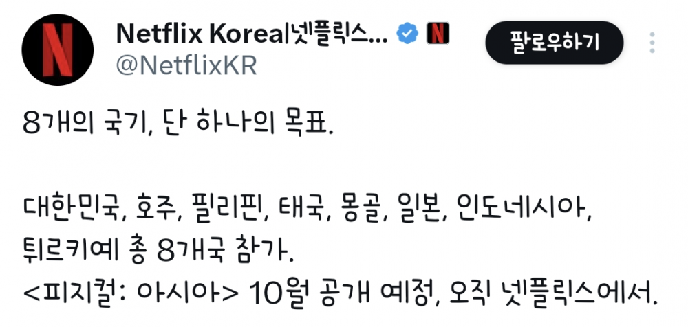 넷플릭스 ‘피지컬 : 아시아’ 참가국 공개