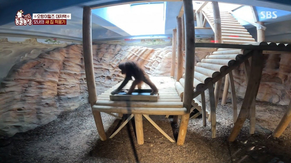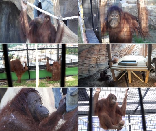사육 환경은 아쿠아리움치곤 상당히 준수하며 1층의 실내 공간, 투명 터널을 통해 연결된 2층 놀이터, 3층 테라스 전망대로 구성되어있습니다. 영장류에게 필수적인 등반 구조물도 많고 바닥도 건강을 위해 잔디와 흙이 깔려있는 등 기본적인 복지 시설은 갖춰진 모습인 것 같네요