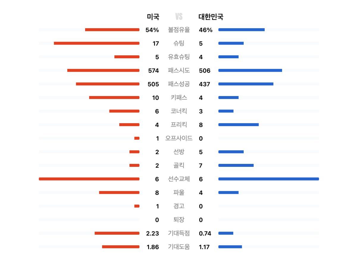 홍 감독은 손흥민을 최전방에 세우고 김민재를 중앙에 둔 스리백, 3-2-4-1 전술로 변화에 나섰다. 대표팀은 경기 초반부터 강한 압박과 빠른 측면 전개, 손흥민과 이재성의 뒷공간 침투로 미국 수비를 흔들었다. 전반 18분 이재성이 오른쪽 측면에서 찔러준 패스를 손흥민이 골지역에서 왼발로 마무리해 균형을 깼다. A매치 통산 52호 골을 기록한 손흥민은 대한민국 A매치 최다 득점 1위 차범근 전 감독(58골)과의 격차를 6골로 좁혔다.