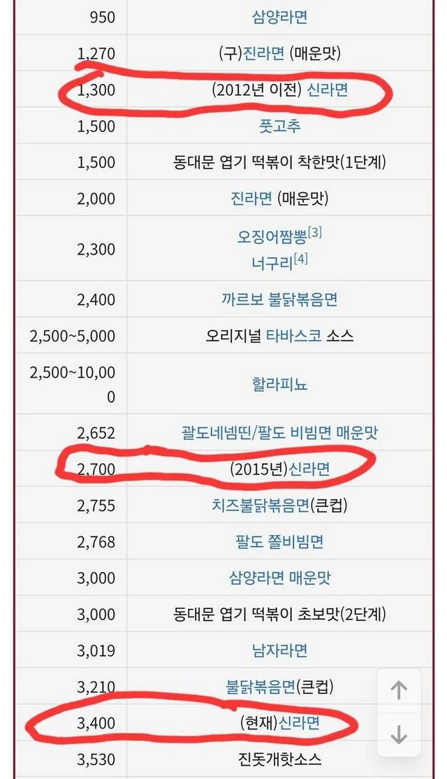 (현재 생산되는 불닭볶음면 큰컵보다 200 정도 높음)