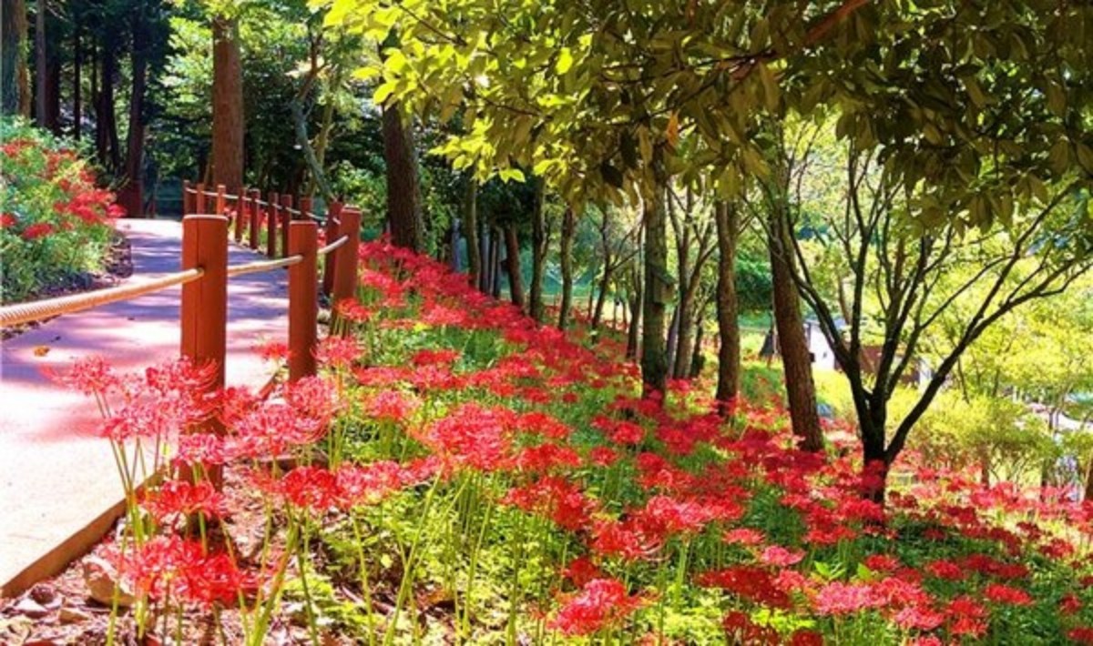 가을은 꽃무릇의 계절이다. 선선한 바람이 불어오는 지금, 붉게 물든 숲길을 따라 걷기에는 더없이 좋은 때다. 낮에는 햇살을 받은 꽃무릇이 편백 숲 사이로 끝없이 이어지며 청량한 풍경을 보여주고, 저녁이 찾아오면 은은한 조명에 물든 꽃무릇이 낮과는 전혀 다른 얼굴로 다가온다. 강렬한 붉은빛이 어둠 속에서 더욱 선명하게 피어나고, 산책로를 따라 이어진 불빛은 가을밤의 낭만을 더한다.