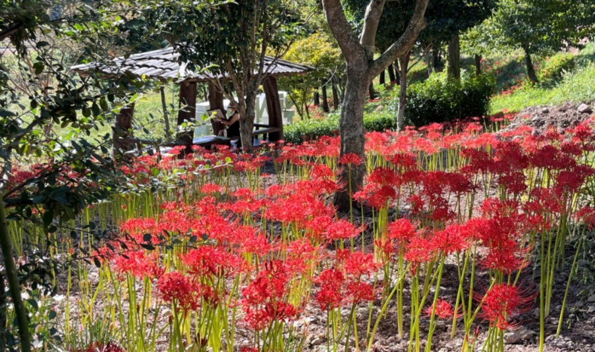 운림산림욕장 내 산책로에는 2022년부터 4년에 걸쳐 약 50만 본의 꽃무릇이 식재됐다. 현재는 절정을 이루며 숲길 전체를 붉게 물들이고 있다. 요양병원에서 산림욕장으로 이어지는 진입로, 쌍계사와 두목재, 장미원(운림예술촌) 등 사천리 주변 곳곳에서도 꽃무릇을 만날 수 있어 산림욕장을 중심으로 한 지역 전체가 가을빛으로 물드는 모습이다.