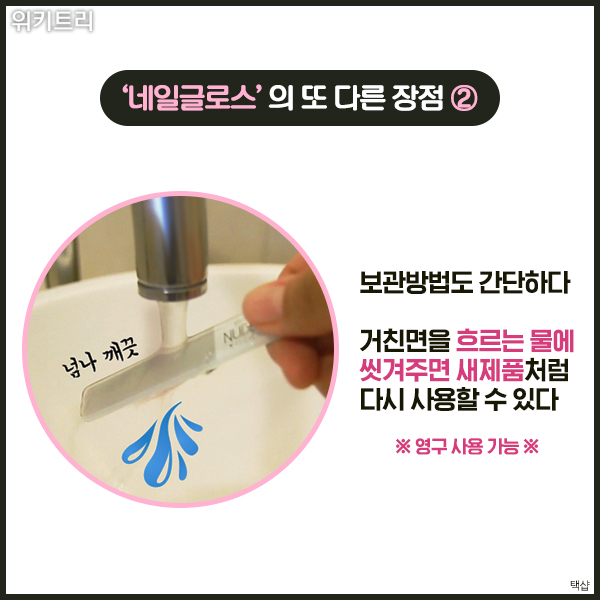 현재 네일글로스는 온라인몰 택샵에서 87% 할인된 가격인 2,000원에 판매 중이다. 저렴한 가격 덕분에 선물용이나 체험용으로도 부담이 없으며, 간단히 휴대할 수 있어 언제 어디서든 손톱 관리가 가능하다.(바로가기)