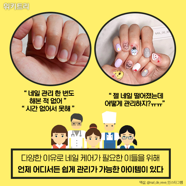 특히 별도의 여러 도구를 준비할 필요가 없고, 손재주가 없어도 쉽게 사용할 수 있도록 설계돼 입문자들에게 제격이다. 바쁜 현대인들에게 초간단 네일 케어템으로 입소문을 타고 있는 이유다.