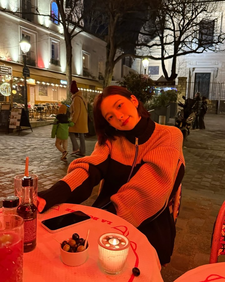 이어진 또 다른 착장에서는 오프숄더 스트라이프 니트와 블랙 미니스커트로 스트릿 무드를 강조하며, 레더 소재의 버클 롱부츠와 시스루 니삭스를 활용해 개성 넘치는 빈티지 스타일링을 드러냈다.