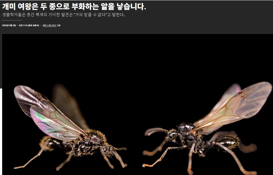 남유럽에 서식하는 이베리아 수확개미라는 개미가 있는데 이 개미의 여왕개미는 수백만년 전 종 단위로 유전자가 달라진 다른 개미의 수컷을 낳는다는 것이 밝혀짐 알기 쉽게 포유류로 비유하면 어떤 실험용 흰쥐가 있는데 번식을 위해서는 자신과 같은 종인 흰쥐를 낳고 노동의 목적으로는 햄스터를 낳아서 햄스터에게 노동을 시킴 메타인지 확실한 추성훈편의점 사장 잡아먹은 알바 뒷이야기군사학과만큼 존재가 의문인 학과체지방 더 빨리 태우는 16가지 방법모바일 카카오톡 광고 줄이는 방법