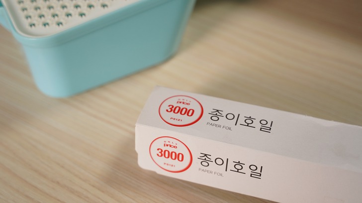 종이 호일을 적당하게 잘라서 강판 위에 올려 주세요.