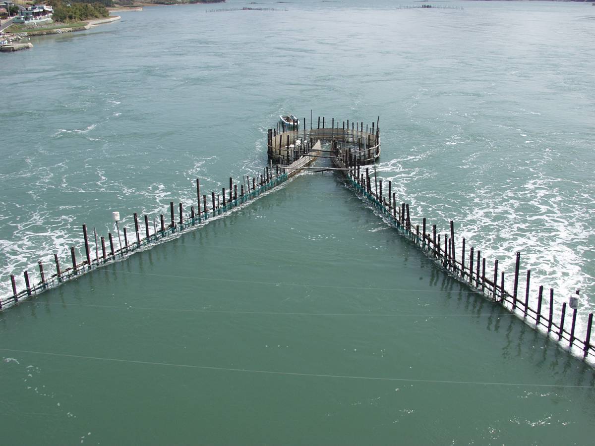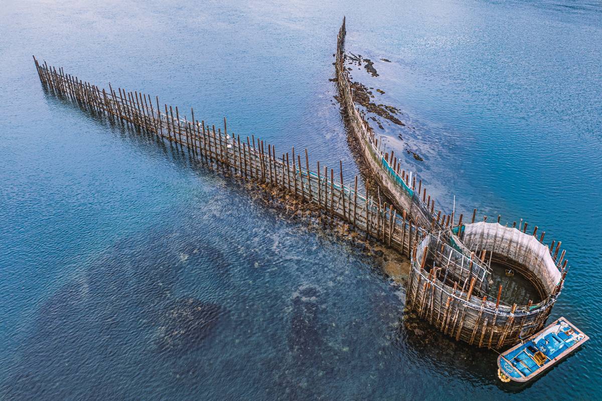 죽방렴의 구조는 단순하면서도 정교하다. 10m 길이의 참나무 말목을 바닷속에 박고, 그 사이를 대나무 발처럼 엮어 V자 형태로 물길을 유도한다. 멸치들은 거센 물살을 따라 흘러 들어가다 V자 말목 끝 원통형 발통에 갇히게 된다. 밀물이 빠지면 발통 안에 고기가 모이고, 이를 뜰채로 건져 올리는 방식이다. 이 과정에서 멸치는 그물에 비해 비늘 손상이 거의 없어 은빛이 살아 있고, 지족해협 물살 덕분에 힘이 좋아 맛과 신선도가 뛰어나다.