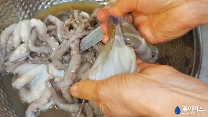 빨판도 완전히 깨끗해 졌어요. 이제 삶아서 볶기만 하면 완전 맛있는 낙지볶음을 만들 수 있습니다 ㅎ