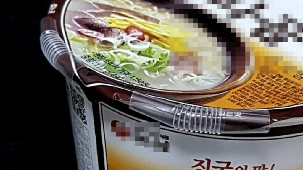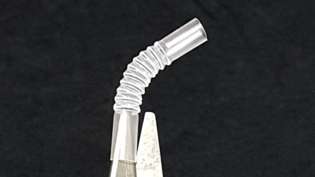 다음으로 사용할 곳은 바로 컵라면이에요. 컵라면은 물을 붓고 뚜껑이 열리지 않게 하는 것이 좋은데요. 이때 빨대 윗부분 구부러지는 곳을 잘라 준비하세요. 그리고 중앙 부분을 가위로 자릅니다.