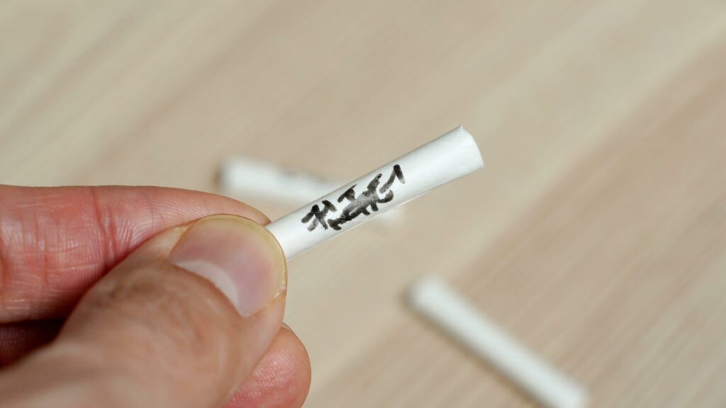 이럴 땐 빨대 하나를 준비해 작게 자른 후 해당 제품의 이름을 적어 놓으세요. 그리고 중앙 부분을 가위로 잘라 냅니다.