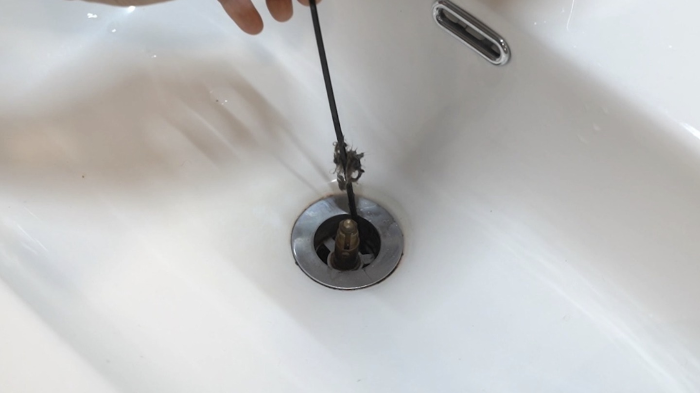 이후 화장실 세면대로 가서 안에 집어 넣었다 뺐다를 반복하세요. 그러면 갈고리 처럼 된 부분에 머리카락과 이물질이 가득 함께 나오는 것을 보실 수 있답니다. 어려운 화장실 세면대 배수구 청소를 케이블타이 하나로 쉽게 끝낼 수 있어 참 좋아요.