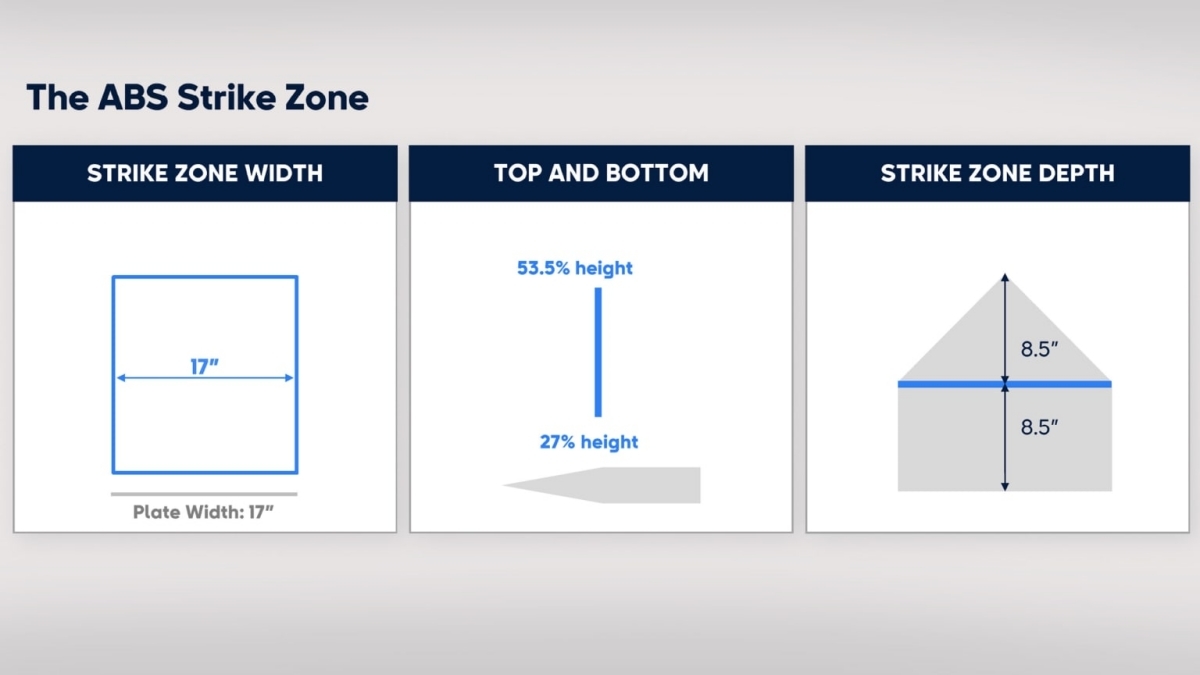 스트라이크 존은 홈플레이트 폭과 같고 높이는 선수의 키에 따라 달라진다. 상단은 키의 53.5%, 하단은 27% 지점까지로 설정되며, 선수단 공식 신장 기록이 기준이 된다.