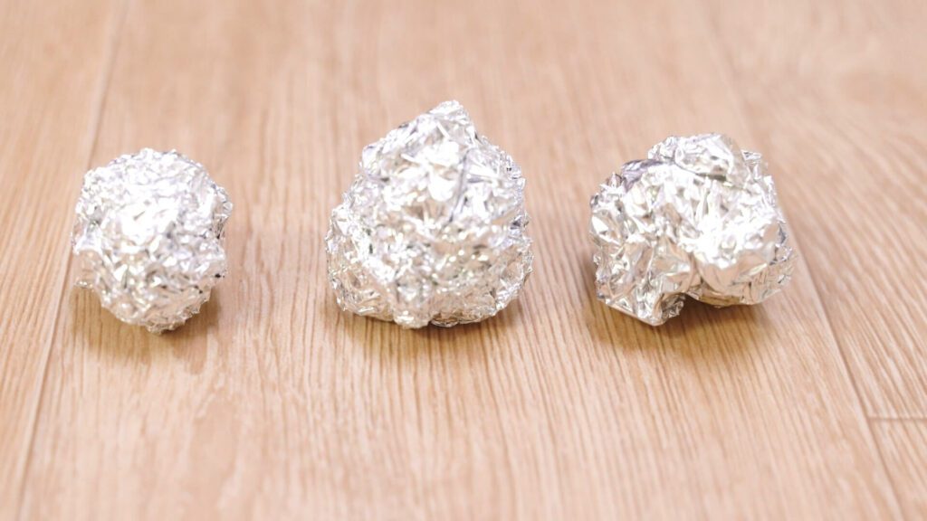 다음으로 해야 할 일은 바로 호일볼을 만드는 것입니다. 은박지를 준비해 공을 너무 크기 않게 만들어 주세요. 탁구공 정도의 크기면 적당해요.
