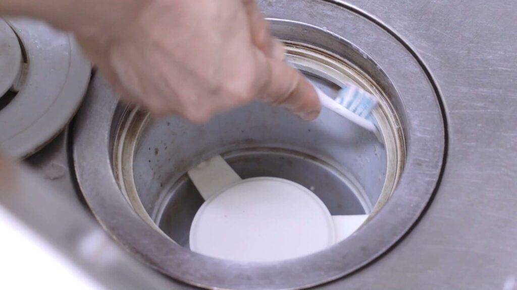 음식물 쓰레기를 비운 후에는 반드시 청소하세요. 배수구 구석구석 칫솔 등을 이용해 닦아 줍니다. 특히 안쪽에는 음식물 찌꺼기가 남아 있을 수 있어 신경 써서 청소해 주세요.