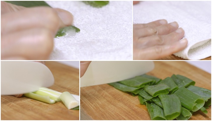 그리고 물기를 완전히 제거한 후 적당한 크기로 듬성듬성 잘라 주세요.