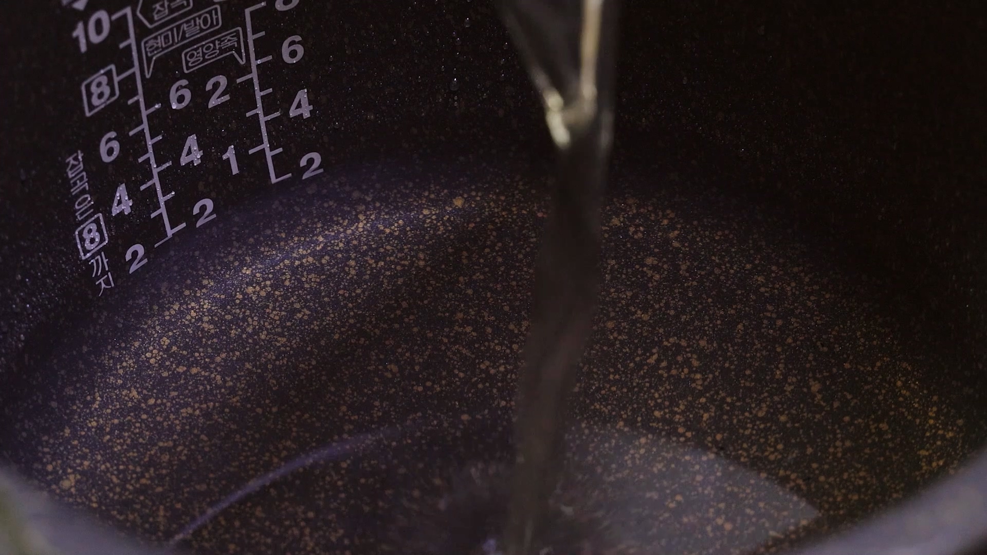 먼저 밥솥에 2컵 분량까지 물을 넣어 주세요. 그리고 식초 2스푼을 넣어 줍니다. 1컵당 식초 1스푼을 넣어 주시면 알맞아요. 물의 양은 너무 많이 할 필요 없이 2컵 분량이면 충분하답니다.